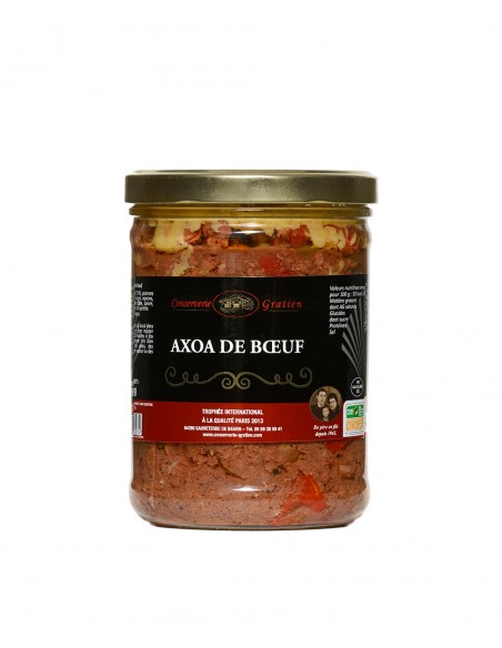 Le Axoa, plats typique du Sud Ouest, après avoir sélectionnés les morceaux les plus nobles, nous avons pris notre plus grand soin à cuisiner cette préparation afin que vous puissiez vous délecter. Se consomme accompagné de pomme de terre vapeur, sautées, ou bien du riz. Très apprécié aussi dans des galettes de blé noir.